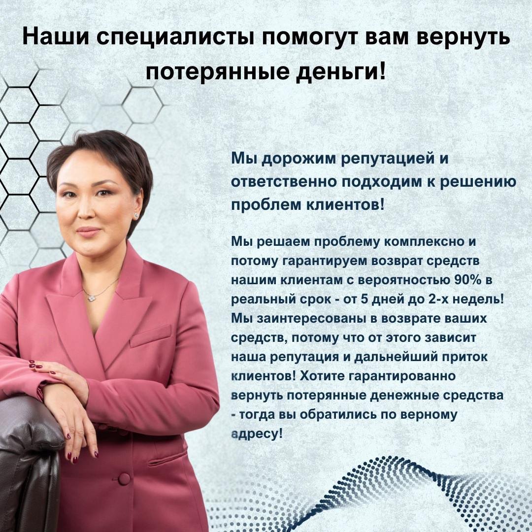 Мы не даем гарантии 100% возврата средств. Каждый случай индивидуален, и зависит от многих факторов.